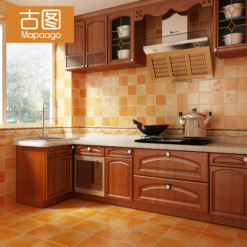 Kitchen antique brick bathroom floor tiles non-slip wear-resistant toilet floor tiles 300X300 grid bathroom tiles