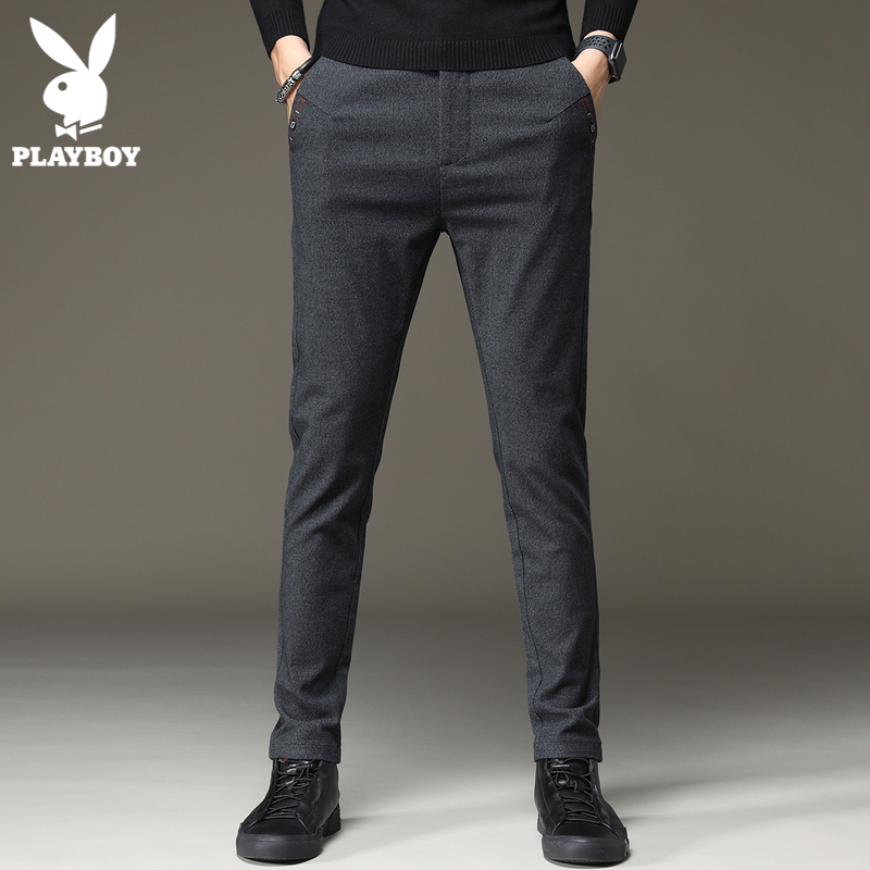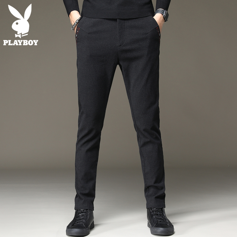 Playboy Casual Pants Men's Autumn and Winter New Trend Slim Skinny Pants Black All-match Plus Velvet Long Pants Men