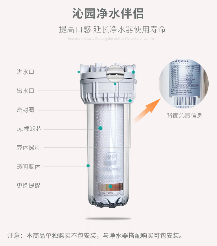 Qinyuan water purification companion QY-PL-101A front filter tap water treatment protection coarse filter element extended life