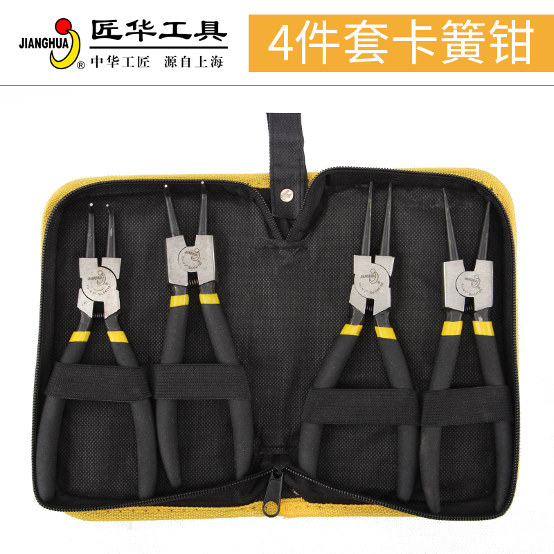 (artisan) SNAP SPRING PLIERS INTERNAL CARD EXTERNAL CARD Dual-use Bend card Yellow pliers Card ring 4 pieces suit C Type clasp e type spring card
