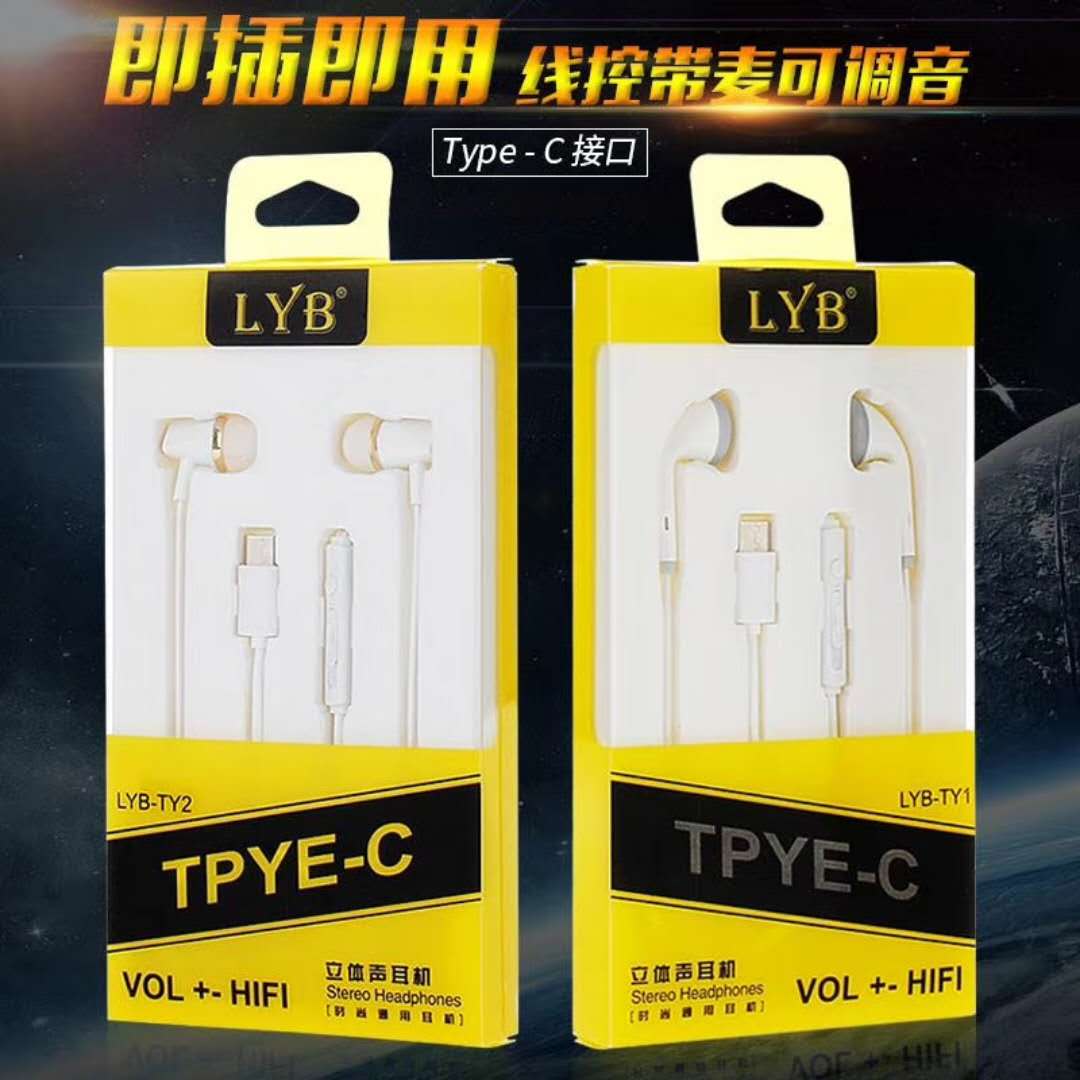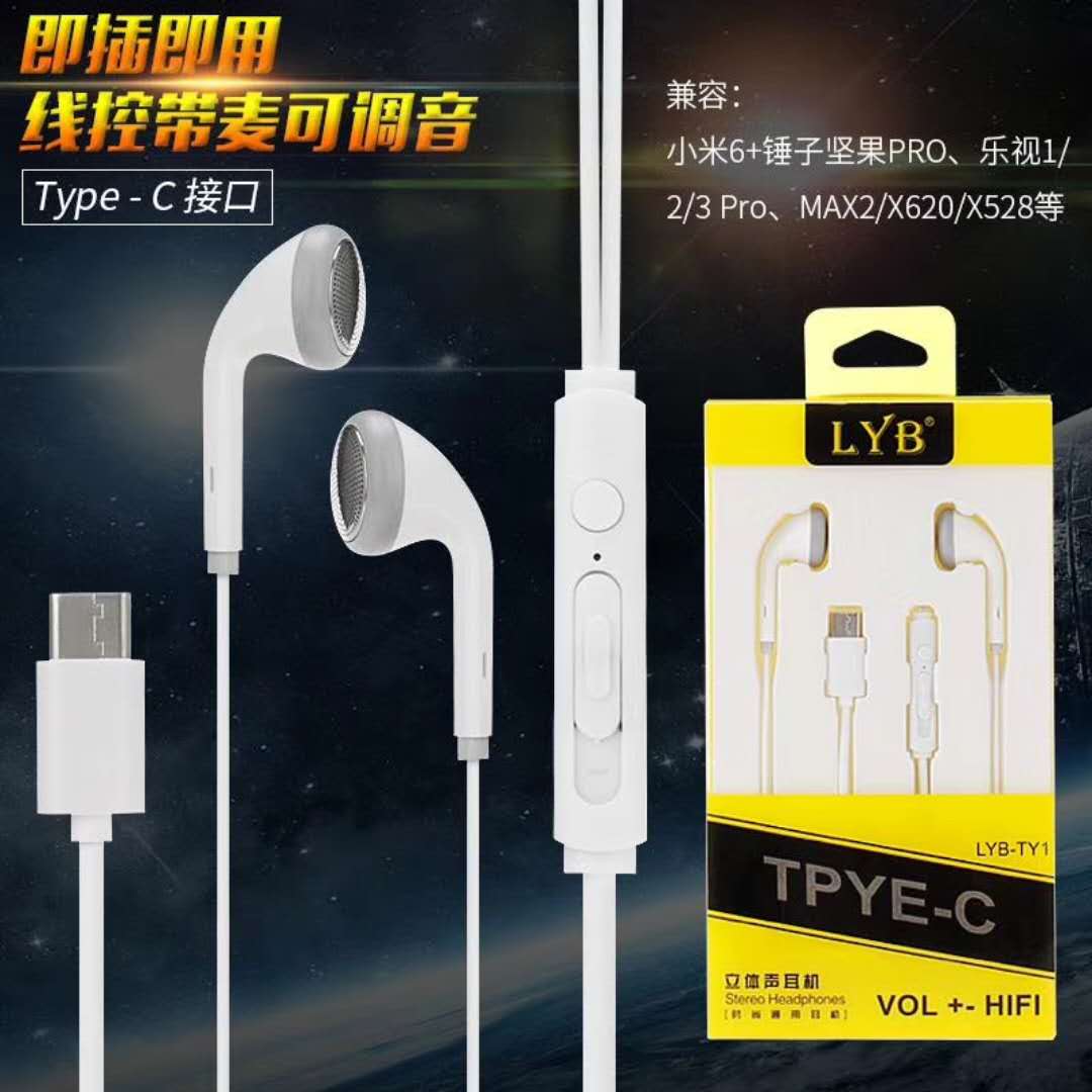 Type-C headphones apply Huawei Leview Xiaomi 8 9 headphone metal heavy bass intelligent tone tuning with wheat earplug