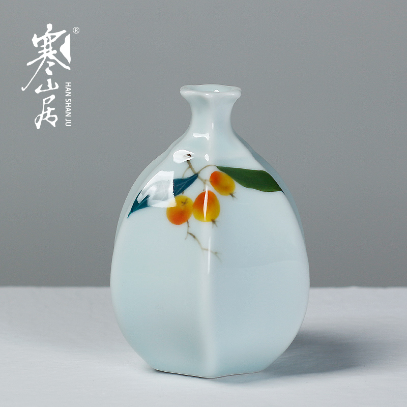 Cold Mountain Residence Pure Hand Painted Blue Porcelain Floral Floral Flower Art Flower Arrangement Countertop vase Home Residence Ornament Small flower Swap