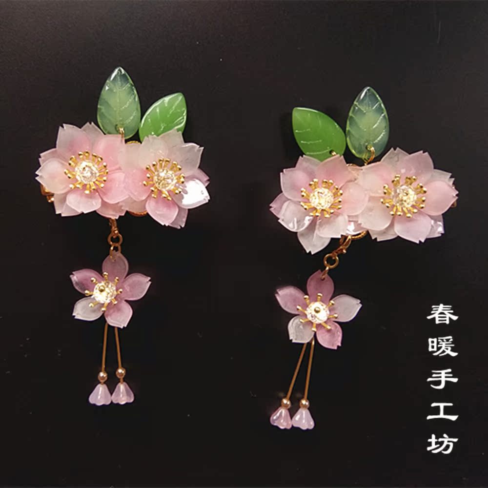Sen Department small fresh spring handmade workshop glass crystal powder cherry blossom clip Chinese style hairpin Hanfu cheongsam hair accessories