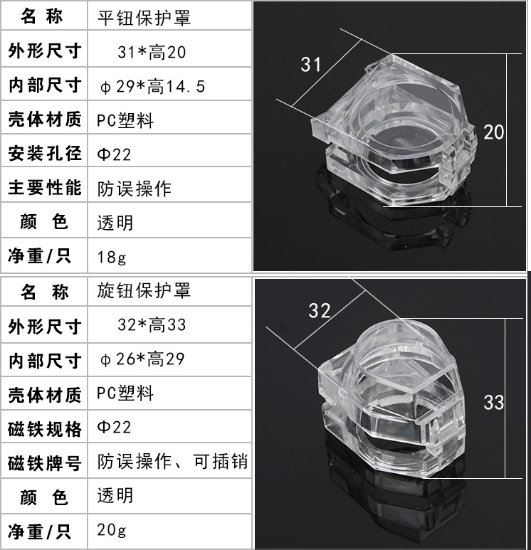 Button protective cover transparent square knob switch protective cover flat button self-resetting button high button accident 22 protective cover
