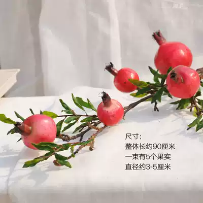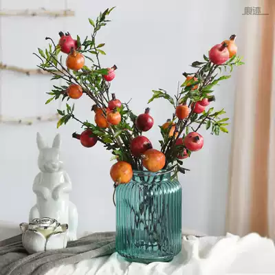 High-end simulation pomegranate fruit tree branches 5 floor-to-ceiling fake flowers and berries living room window desktop auspicious decoration