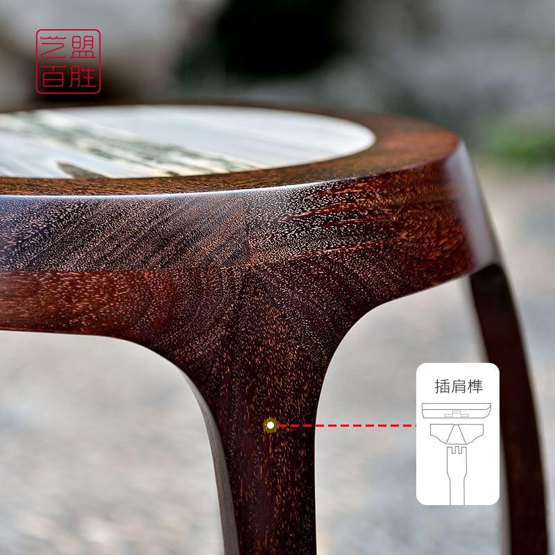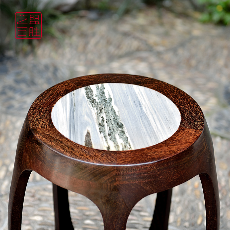 Yumeng Zambia blood sandalwood drum stool Five-legged inlaid marble solid wood round stool Classical embroidered pier shoe stool