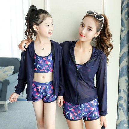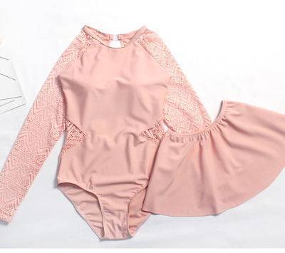 2-15 years old children's swimsuit Girls ' one-piece swimsuit Medium and large children's sunscreen long-sleeved lace halter bikini Parent-child outfit