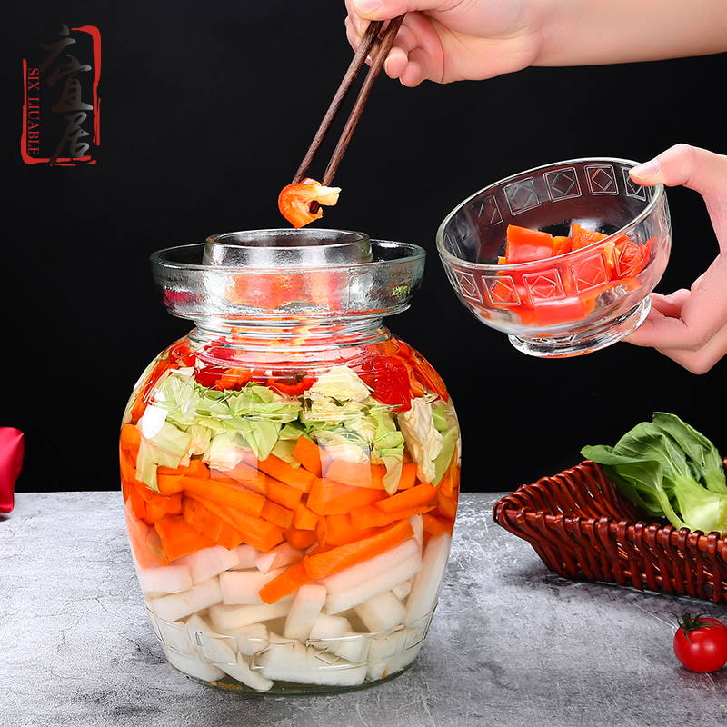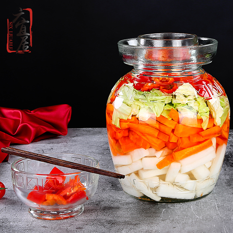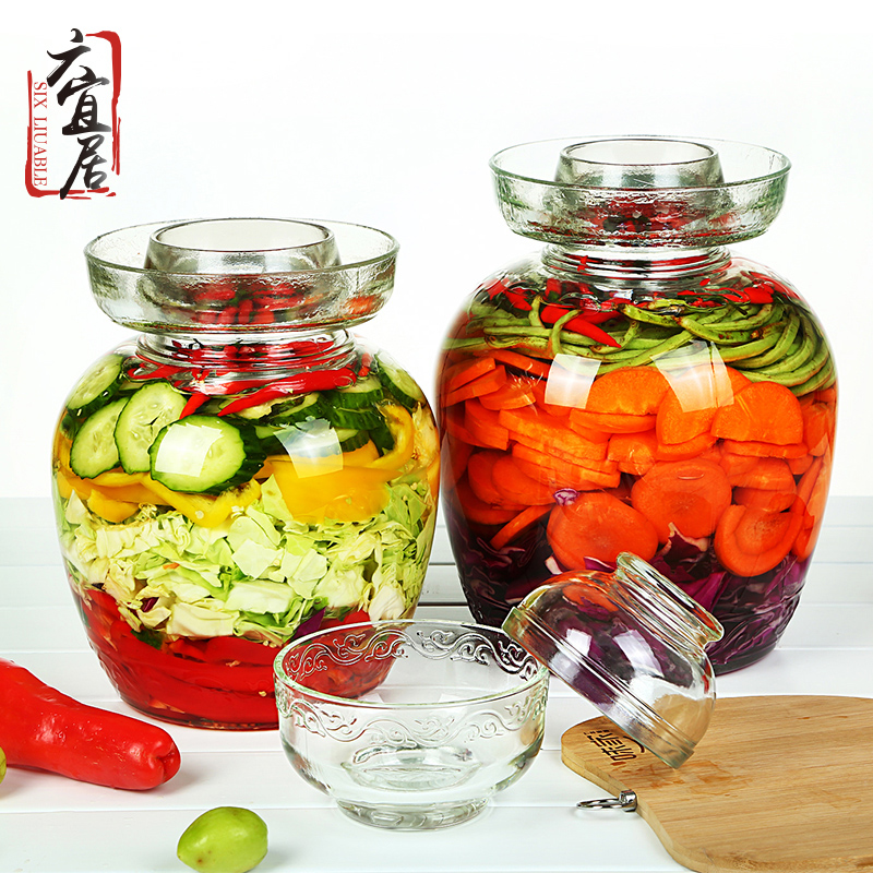 Six livable thickened Sichuan pickle jar sealed glass transparent pickle jar pickle jar pickle jar home