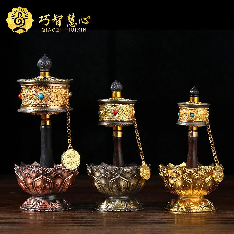 Tibetan hand-cranked prayer wheel Nepalese craft six-character mantra mini trumpet ultra-silent prayer wheel tantric instrument