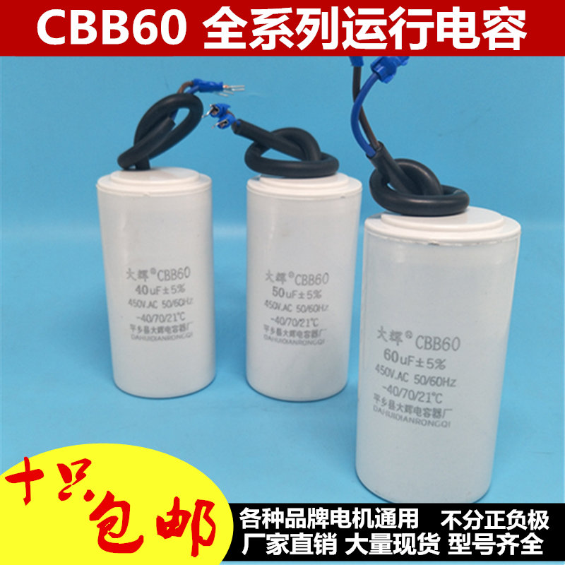 CBB60 motor running capacitor 30uf35uf40uf50uf60uf80uf water pump starts capacitor 450v-Taobao