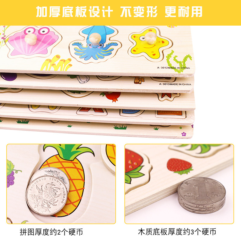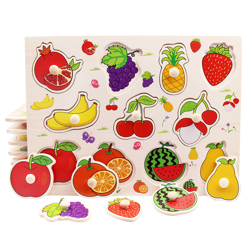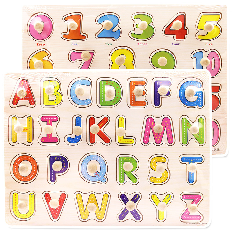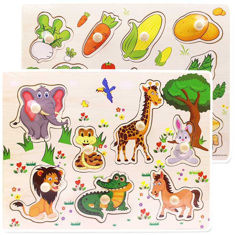 Young Children Hands Grip Board Jigsaw Puzzle Animals Digital Cognition Early Lessons Intelligence Jigsaw Puzzle Insert Wooden Toys 3-6 years old