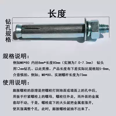 Galvanized expansion screw long long iron canopy expansion screw blue and white external expansion screw M6M8M10m12