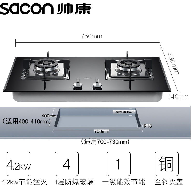 Shuai Kang 35F large opening size drilling gas stove Double mouth gas stove Embedded desktop household gas stove 700times 400