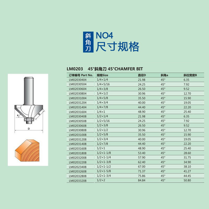 Blue wood boutique 1 4 bevel knife woodworking milling cutter slotting cutter trimming machine cutter head engraving electromechanical wood milling gong knife