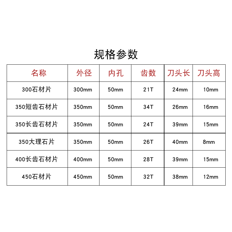 Oyan 300 Stone Saw Blade Oyan 350 Short Teeth (Granite Special) Oyan 350 Long Teeth (Granite Special) Oyan 400 (Granite Special) Oyan 460 (Special For Granite Special)