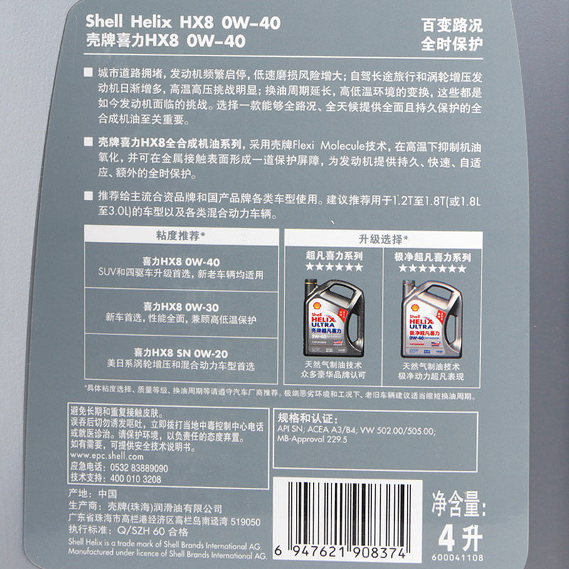 (Upgraded) Shell Heineken HX8 greyshell fully synthetic oil lubricant 0W-40 4L