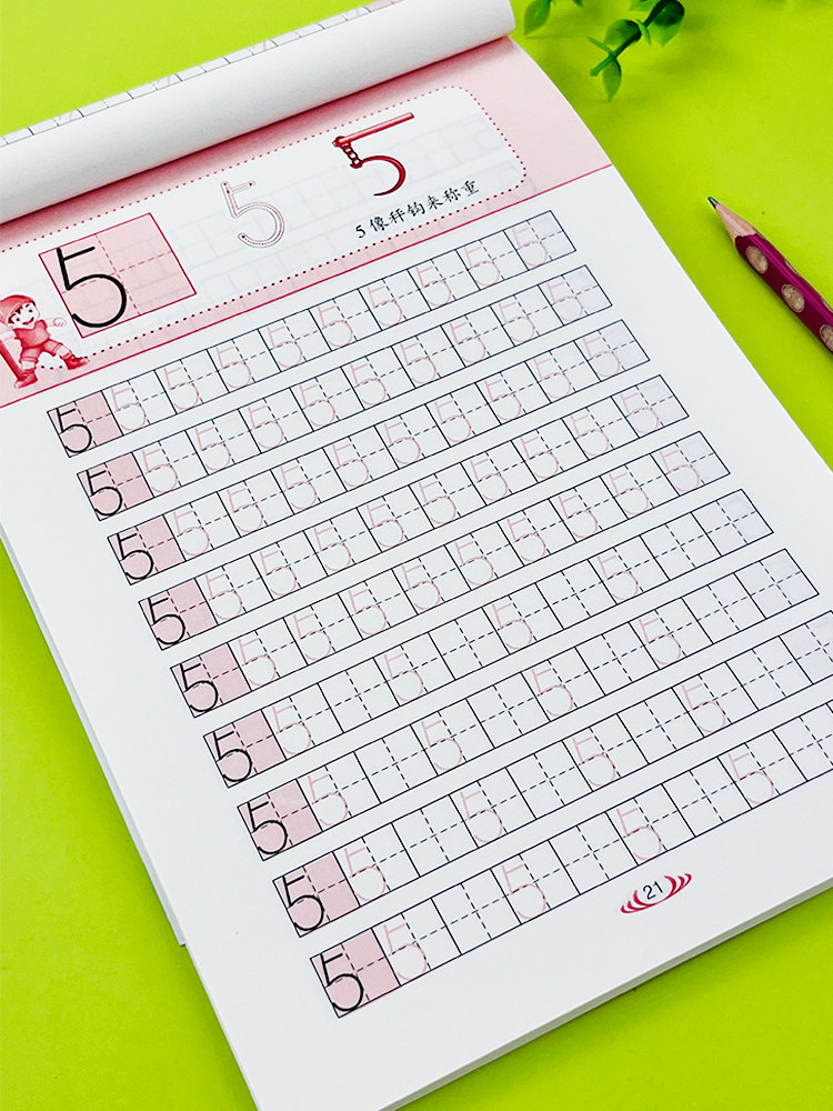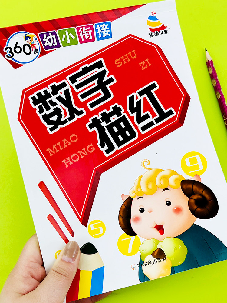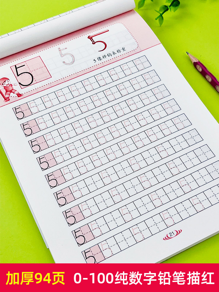 360-degree young children's connection digital tracing red book early childhood mathematics enlightenment early teaching preschool children learning to write numbers 0-1-10-100 pencil dotted line description practice calligraphy exercise book young to primary one