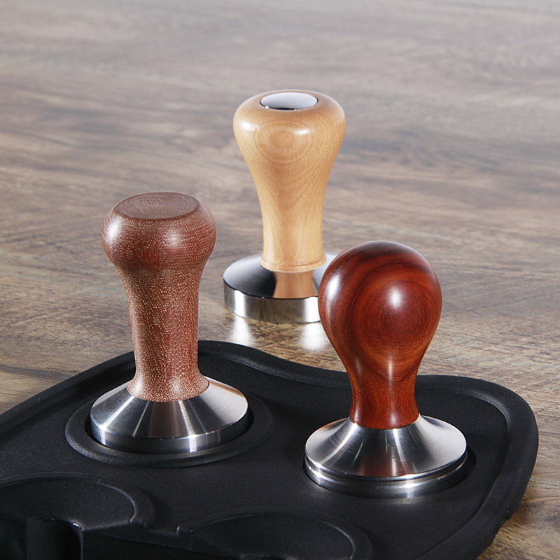 Stainless steel presses 51 58mm wood handle presses coffee equipment with pressed powder hammer coffee fabric