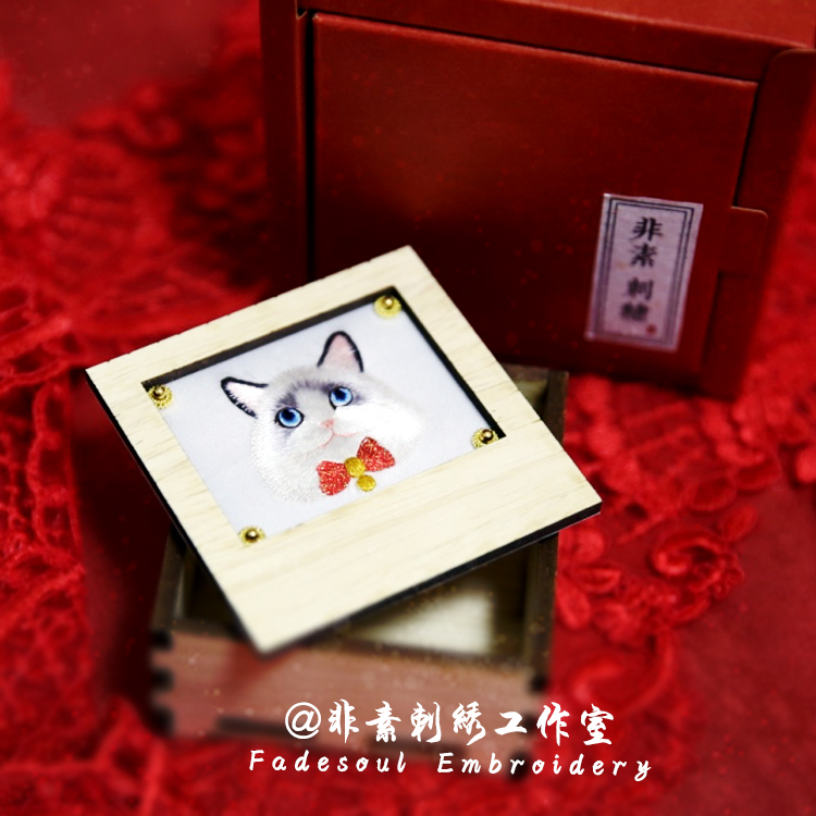 Non-vegetarian "Muppet cat"Su Embroidery Seiko embroidery original design Pet jewelry commemorative box custom lettering