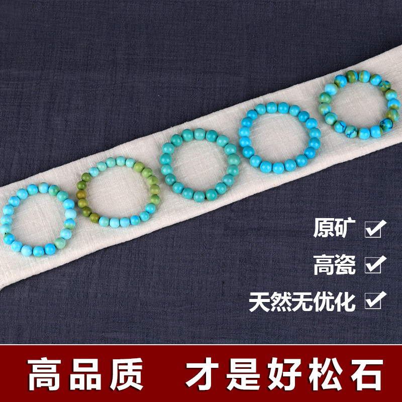 Natural Raw Mine Green Pine Stone Hand Strings Round Pearl Old Men And Women Buddha Beads Handmade 108 Loose Beads Accessories to Play High Porcelain Blue