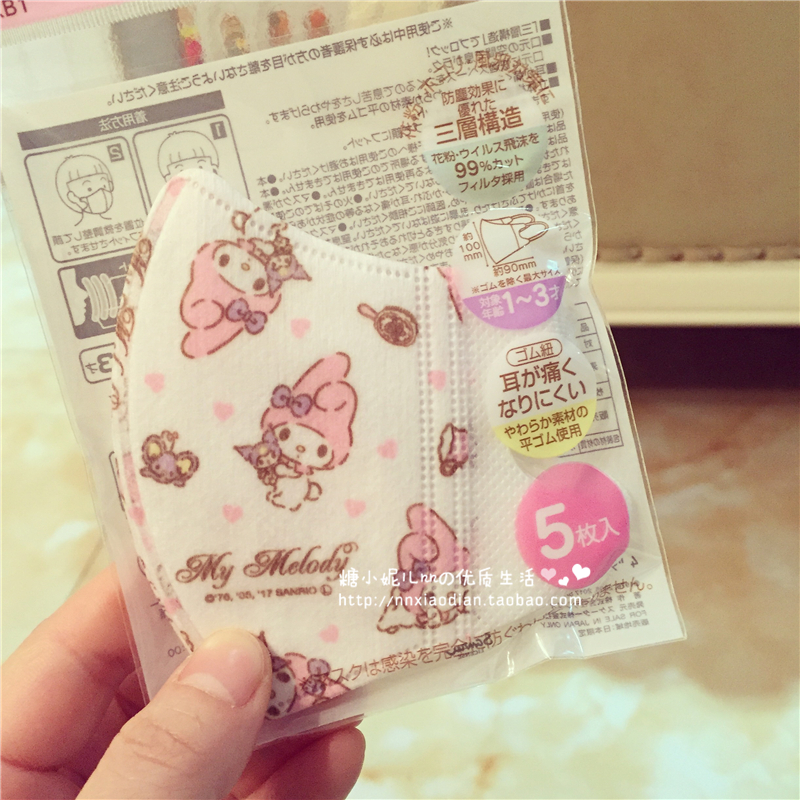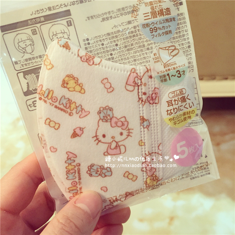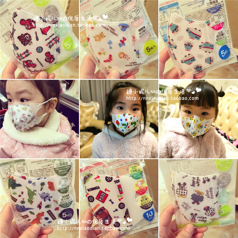 Japanese native Skater baby baby car Kitty dinosaur anti-pollen grey disposable mask