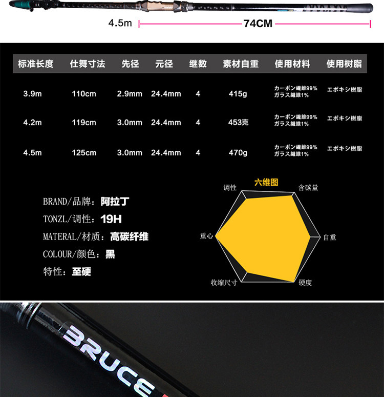 Dai Home Far-to-pole Li Xiaolong Carbon Sea Pole 3 9 m 4 5 m Ultra Hard Tuning Long Festival Throwing Rod Hanging Fishing Rod Anchor Fishing Rod