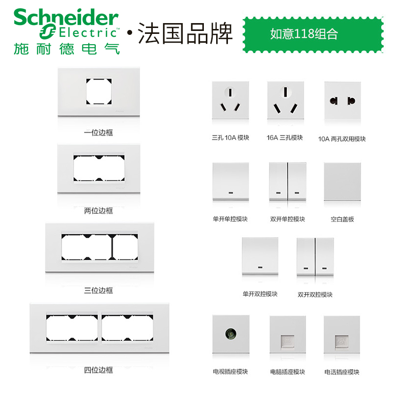 Schneider switch socket Ruyi 118 kitchen power supply 9-hole socket nine-hole twelve-hole panel socket