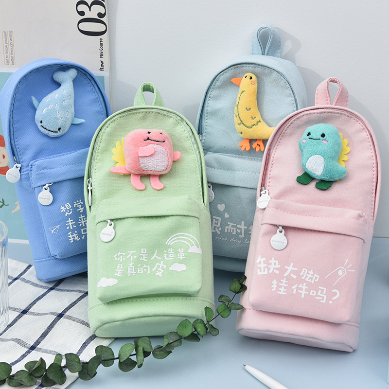 Creative Korea small fresh school bag modeling pencil bag Female simple girl heart cute box bag Junior high school students ins college girls net red stationery box ins tide girl canvas Korean version of the large capacity