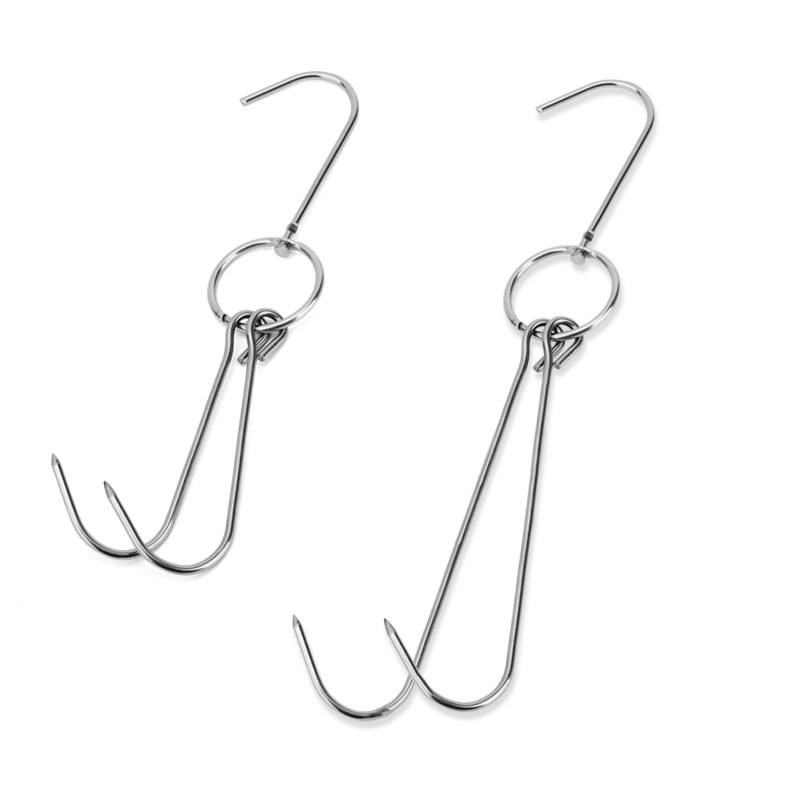 Stainless steel with ring double hook kitchen hook Roast Meat Crochet Meat Hook Fishing Hook Barbecue Grill Hook Barbecue Duck Hook