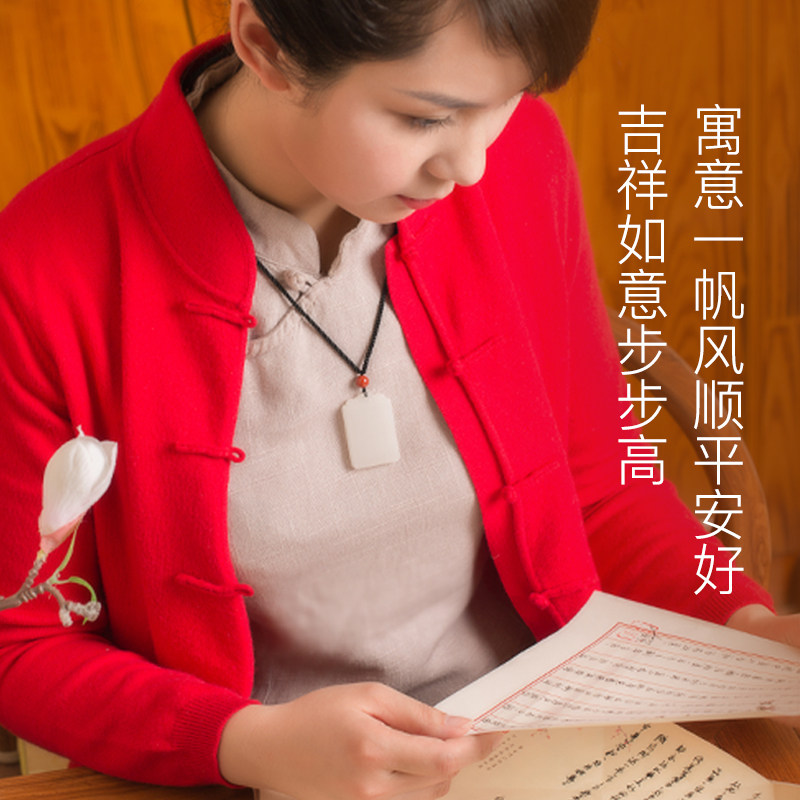 White Jade Family and Tian Yu Sheep Fat Jade Safe And Quiet Card Pendant Men's and Women's Jade Pendant Jade Pendant Jade Brand Jade Pendant