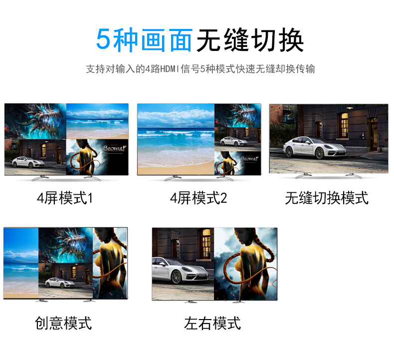 HDMI high-definition 4 in 1 out picture divider 2 into 1 with audio port separation seamless splicing switcher 4-way spell