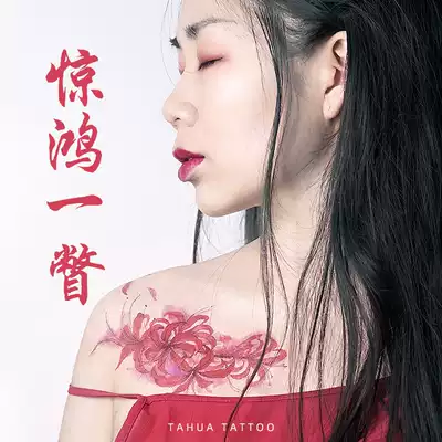 She painted the other shore flower collarbone tattoo with Manzhu Shahua large pattern tattoo waterproof female lasting semi-permanent