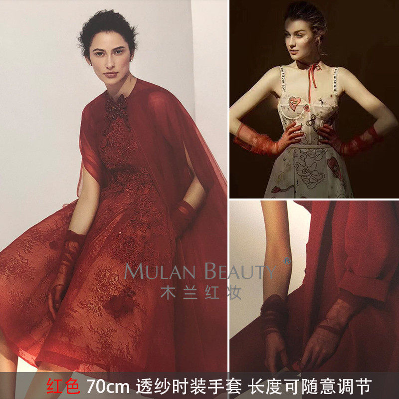 70CM long gloves late night with the same DIY transparent tulle plain bridal dress photo studio modeling gloves sunscreen