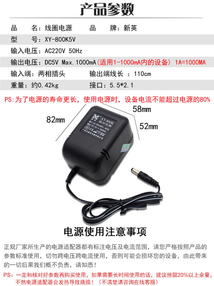 New Ying XY-800K-5V1A voltage-stabilized DC power supply adapter 5V1000ma coil transformer copper wire