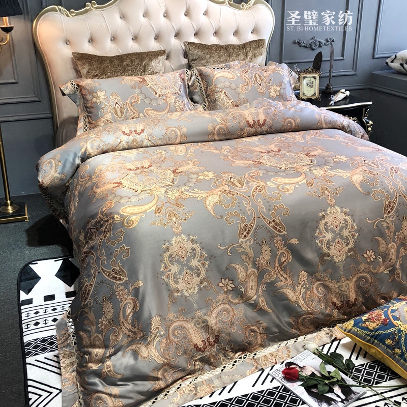High-end damask satin jacquard four-piece set European bed six-piece set hollow 1 8-meter bedding double large