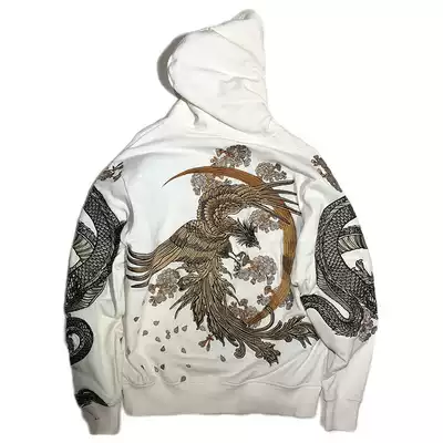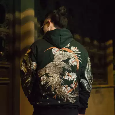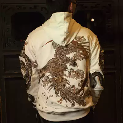 National tide three provinces six original spring and autumn Chinese style men's and women's couples gold thread dragon and phoenix embroidery hooded pullover casual top