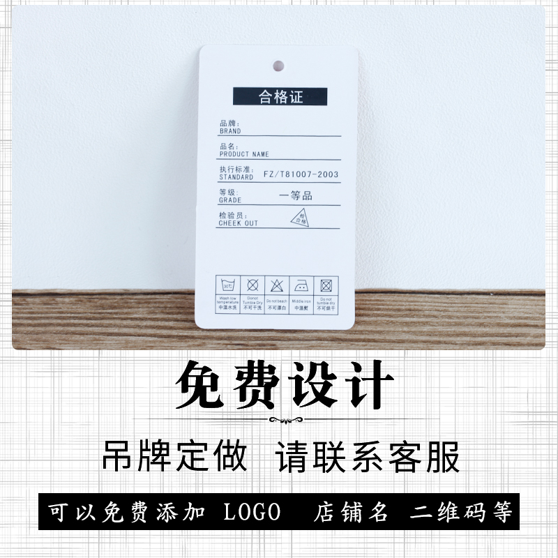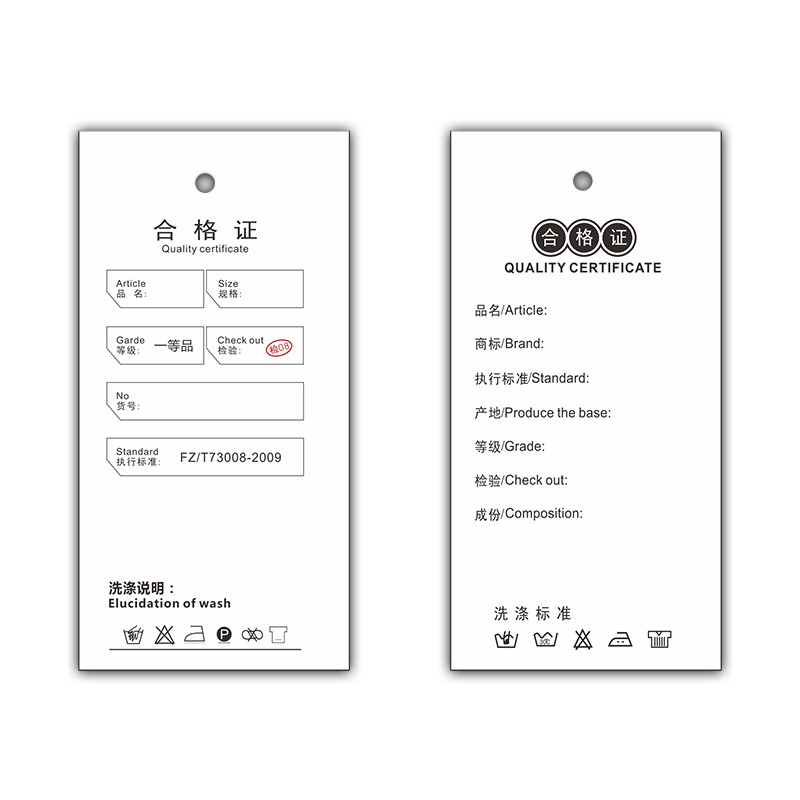 Hangtag set to be qualified certificate clothing label custom card printed listing customized