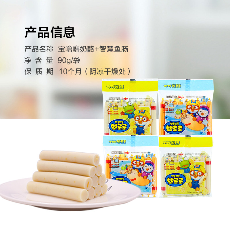 Lele Bao Puru wisdom cheese cod intestines baby snacks fish sausage baby 90g * 4 bags imported from Korea