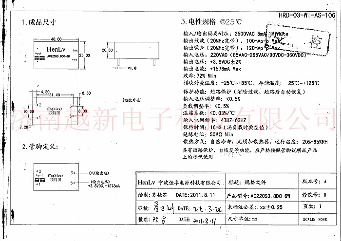 AC220S3 8DC-6W constant rate ACDC module power Henlv power module 220V to 3 8V output 6W