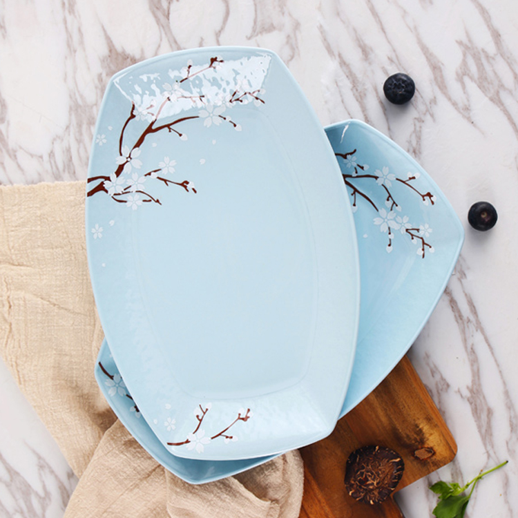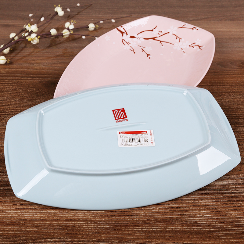 Shunxiang ceramic fish plate household steamed fish plate 12-inch rectangular plate Korean color microwave oven