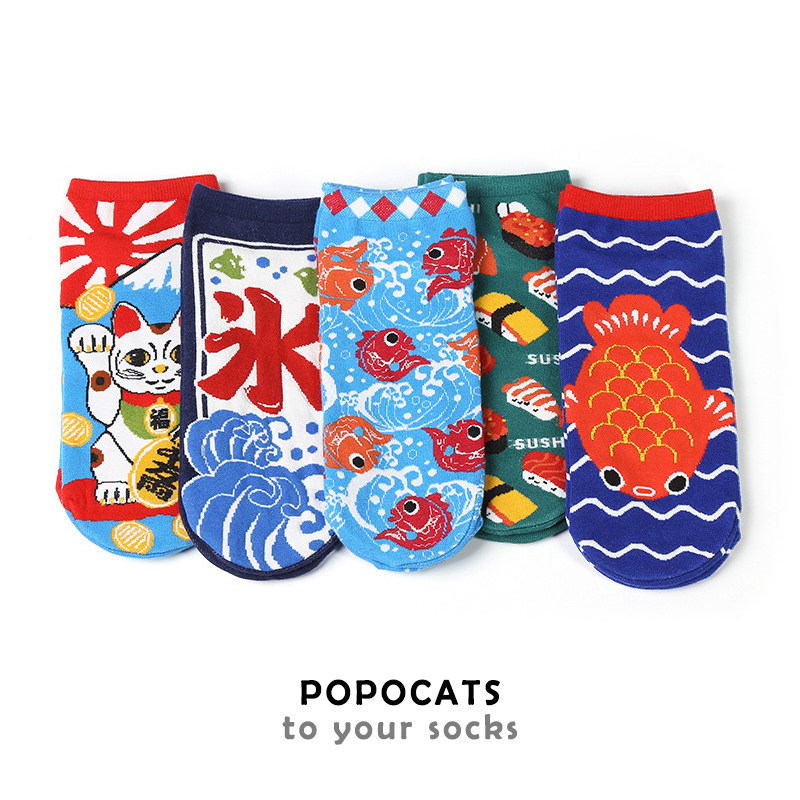RMB39 5 Double days Department of Finance Cat Flowers Socks Children Personality Graffiti Cute Pure Cotton Invisible Socks SHALLOW MOUTH DAY ENSEMBLE