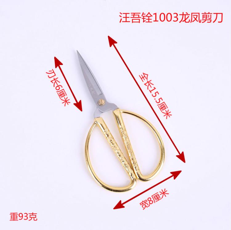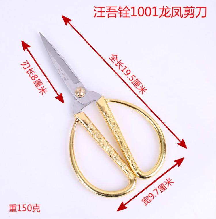 Wang Wuquan scissors Household dragon and phoenix stainless steel scissors ribbon-cutting wedding retro industrial gold scissors 1002