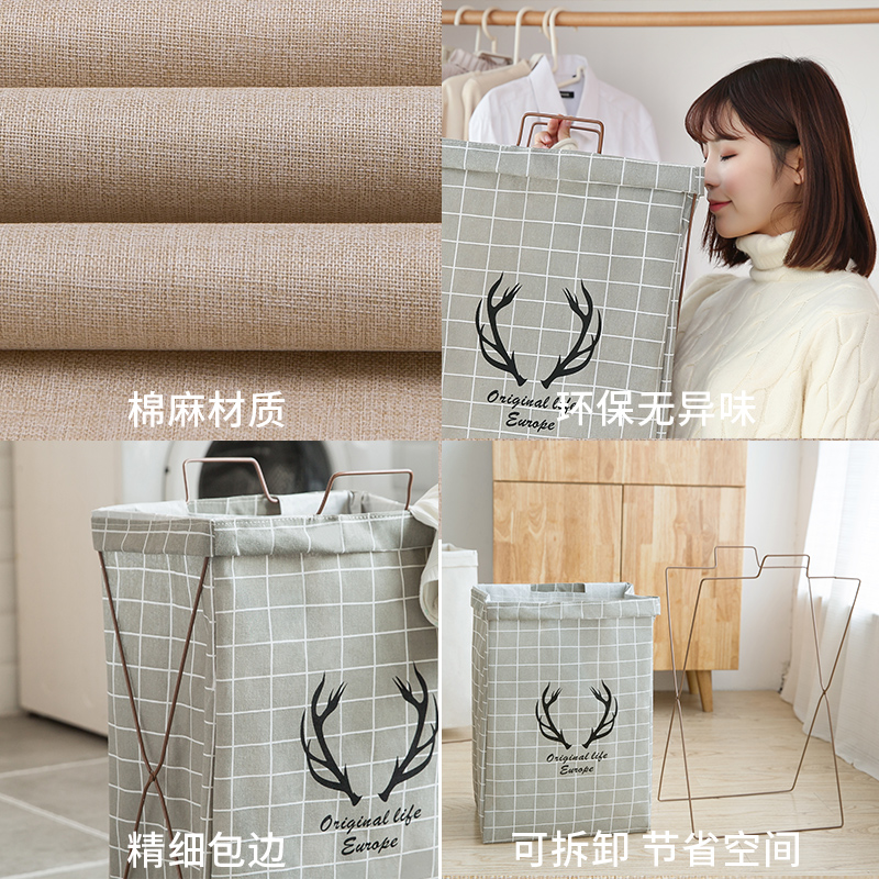 Cotton and linen laundry basket Dirty laundry basket Laundry storage basket Bracket type fabric folding dirty laundry basket Dirty clothes storage