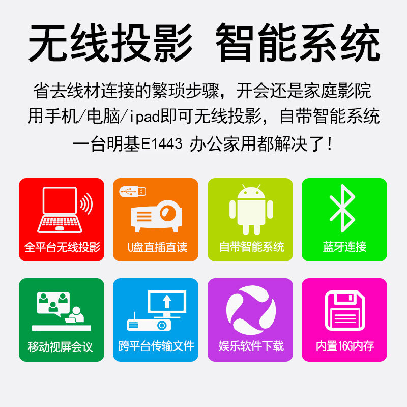 BENQ BenQ Projector E1443 Home Office Smart Business Meeting Training Wireless Wifi Mobile Phone Projection (3600 Lumens Wireless Same Screen Bluetooth 16G Memory )