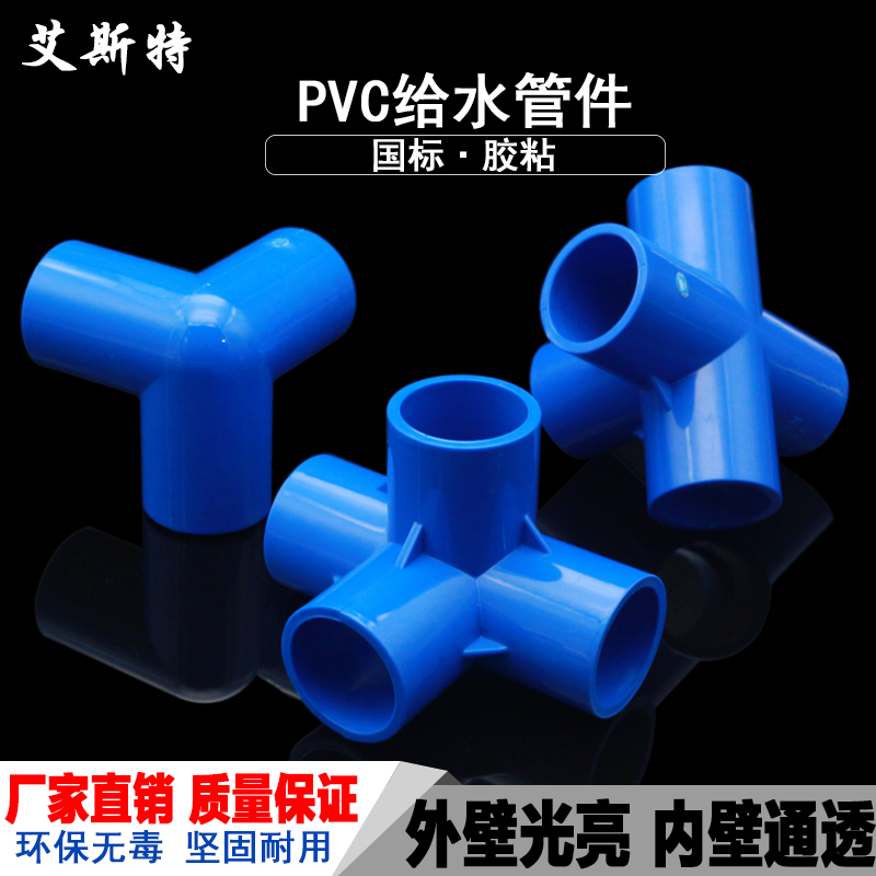 PVC pipe fittings three-dimensional three-way four-way five-way blue right-angle shelf plastic 4-point water supply 20 25 32 50 - Taobao