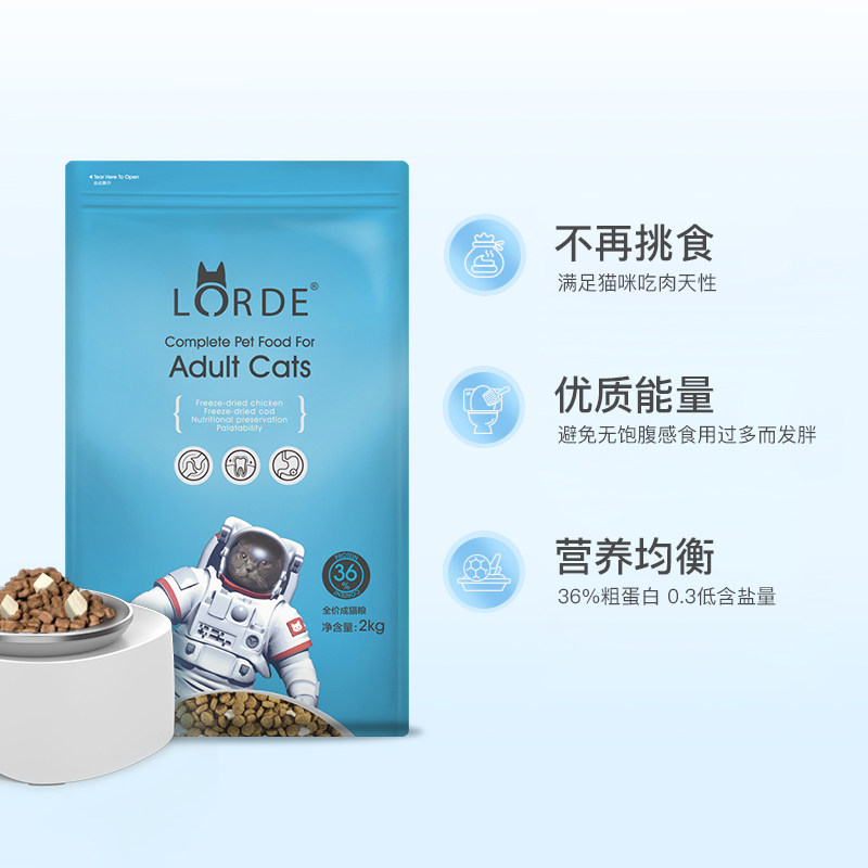 LORDE pocket freeze-dried cat food Adult full-price cat food Blue cat fattening hair gills cod 4 pounds of adult cat general cat food
