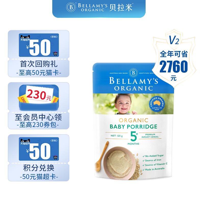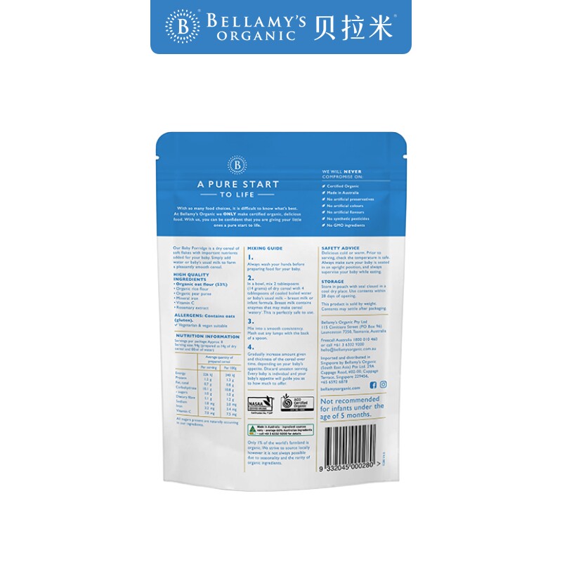 Bellamy imported organic infant oats high-speed rail prebiotic rice flour rice paste May 125g 2 times Buy