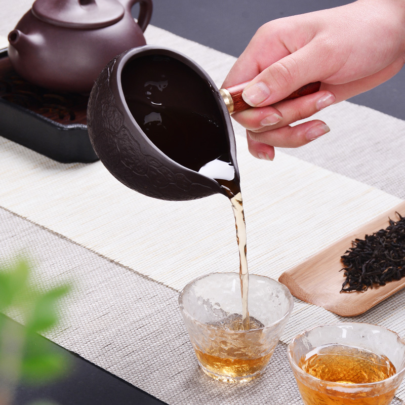 Purple sand withered field tree pattern tea sea - rosewood handle, withered field justice cup, frog tree rattan tea leak group