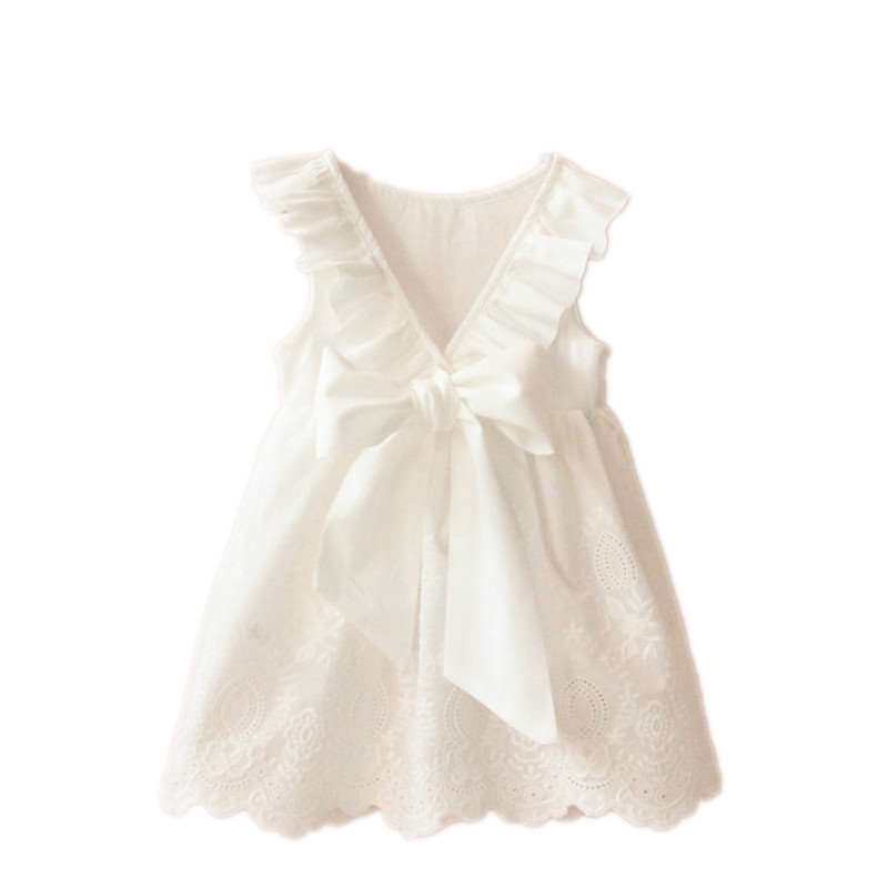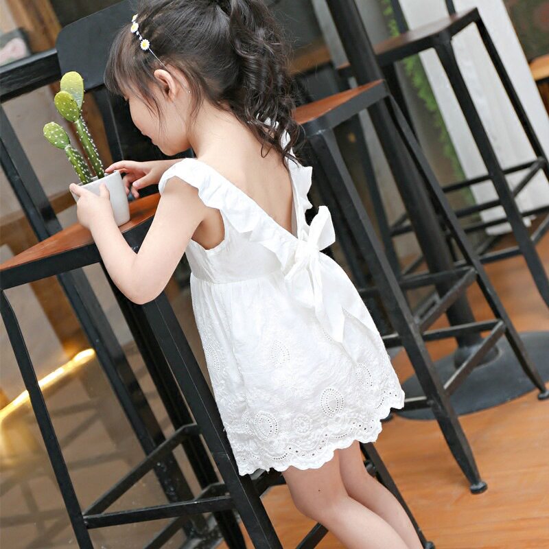 Girls' skirt pure cotton 2022 summer thin section children's baby girl vest skirt bowknot princess white dress