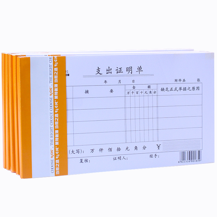 Expenditure certificate (5 copies) Debit note (5 copies) Receipt note (5 copies) Travel expense reimbursement form (5 copies) Accounting voucher (5 copies) Expense reimbursement form (5 copies) Original voucher sticker (5 copies)